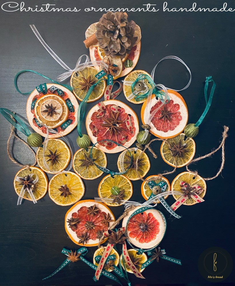 O serie de ornamente pentru Sărbătorile de iarnă, din fructe lăsate să se usuce natural, timp de o lună. Florinela recomandă această metodă vs. unei confieri forțate pentru ca fructele să își păstreze aromele, dar și culorile.