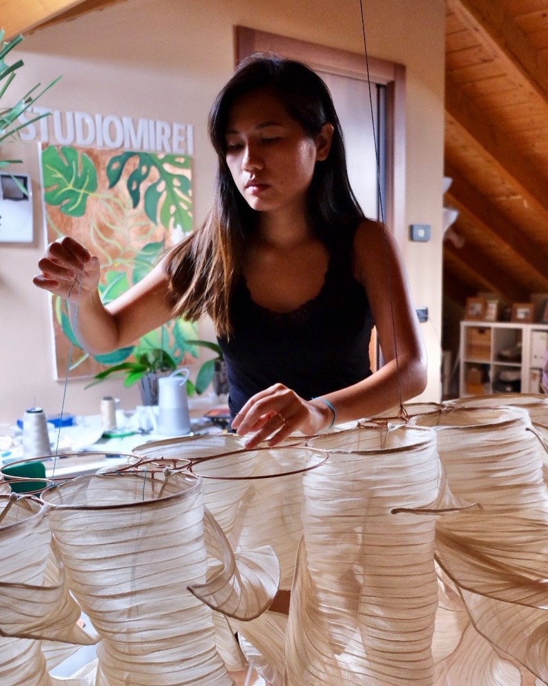 I am Mirei, a Filipina designer based in Milan since 2014. In our studio, we mainly design sustainable lighting pieces that elegantly combine craft and technology.