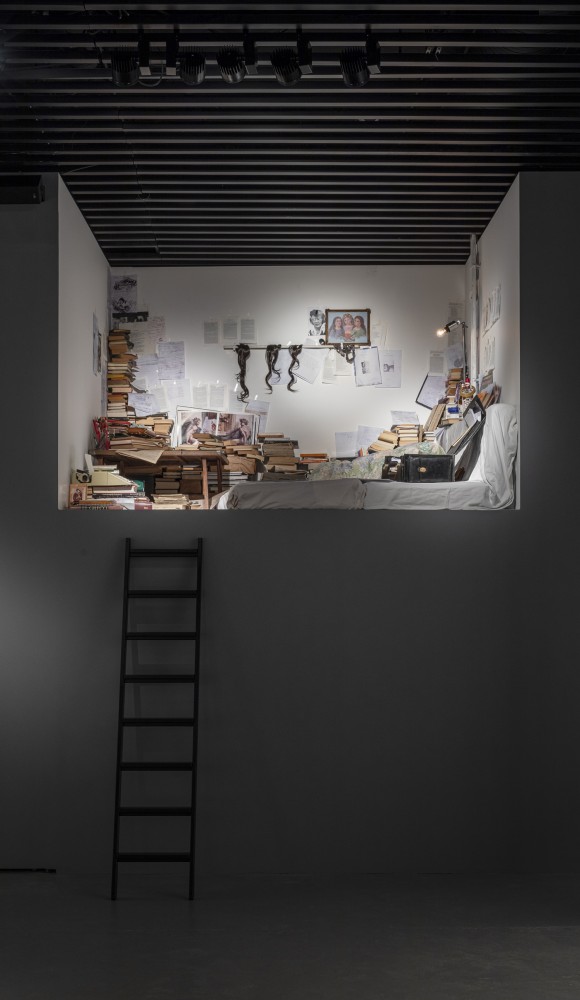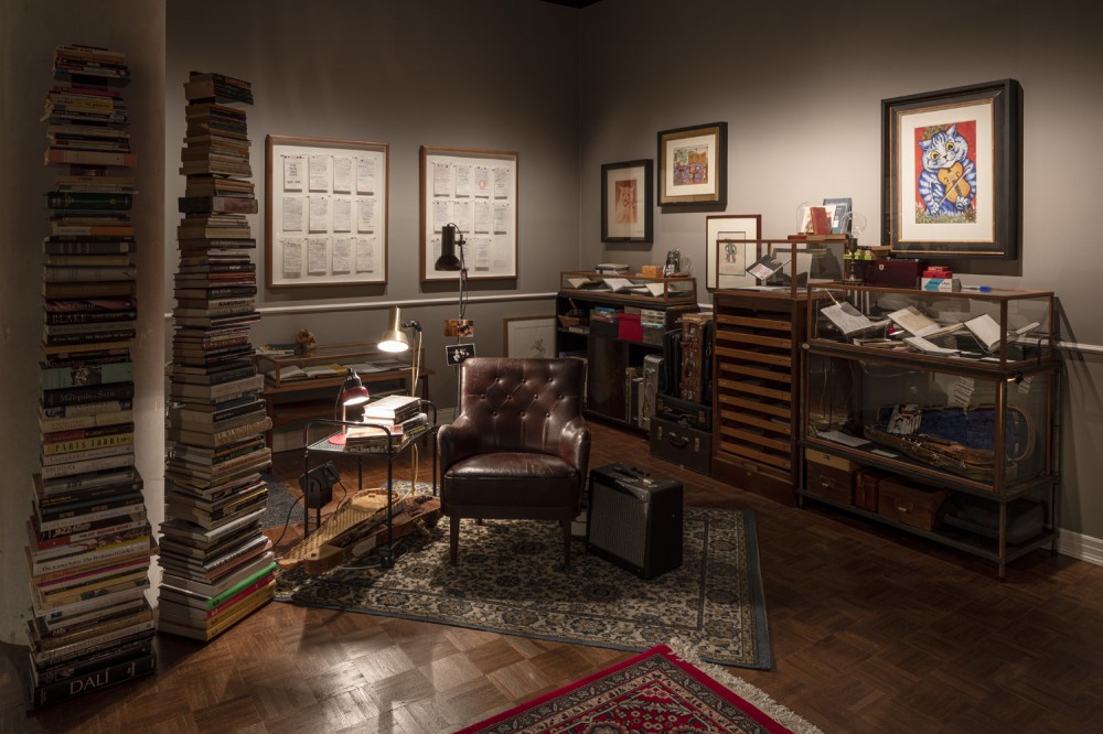 Recrearea biroului lui Nick Cave, realizată în colaborare cu artiștii Iain Forsyth și Jane Pollard, folosind obiecte de inventar, artefacte și fotografii din biroul personal al lui Nick Cave (© Anders Sune Berg / Det Kgl Bibliotek)